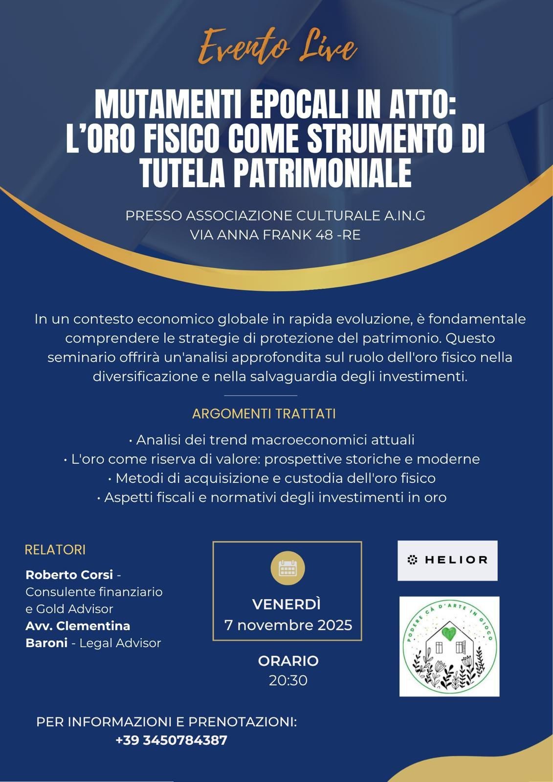 Questo seminario offre un'analisi approfondita sul ruolo dell'oro fisico nella diversificazione e nella salvaguardia degli investimenti.