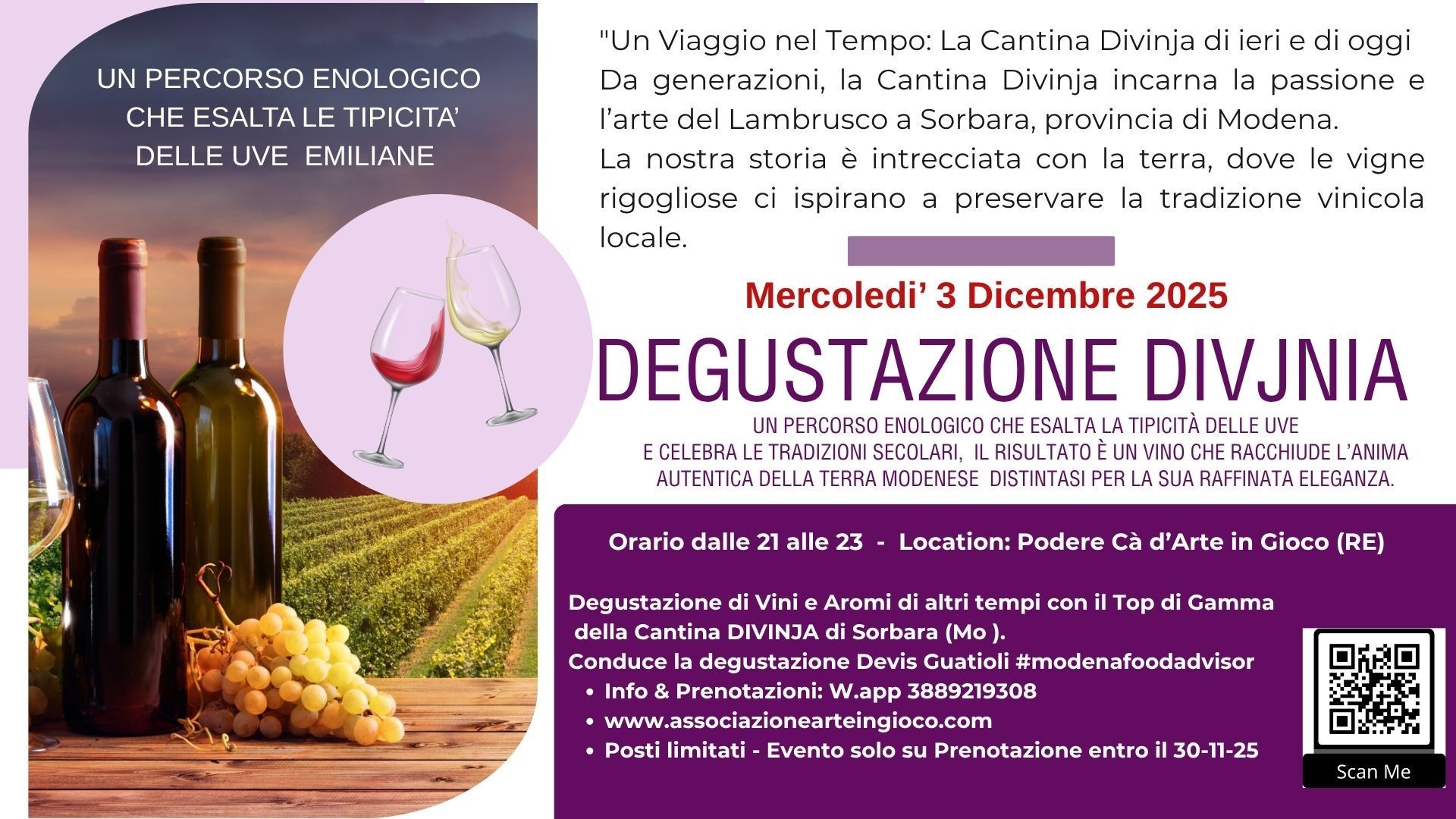 Orario: dalle ore 21.00 presentazione dei prodotti della Cantina Divinja di Sobara (MO) a cura di Devis Guaitioli #modenafoodadvisor e a seguire convivio di degustazione!